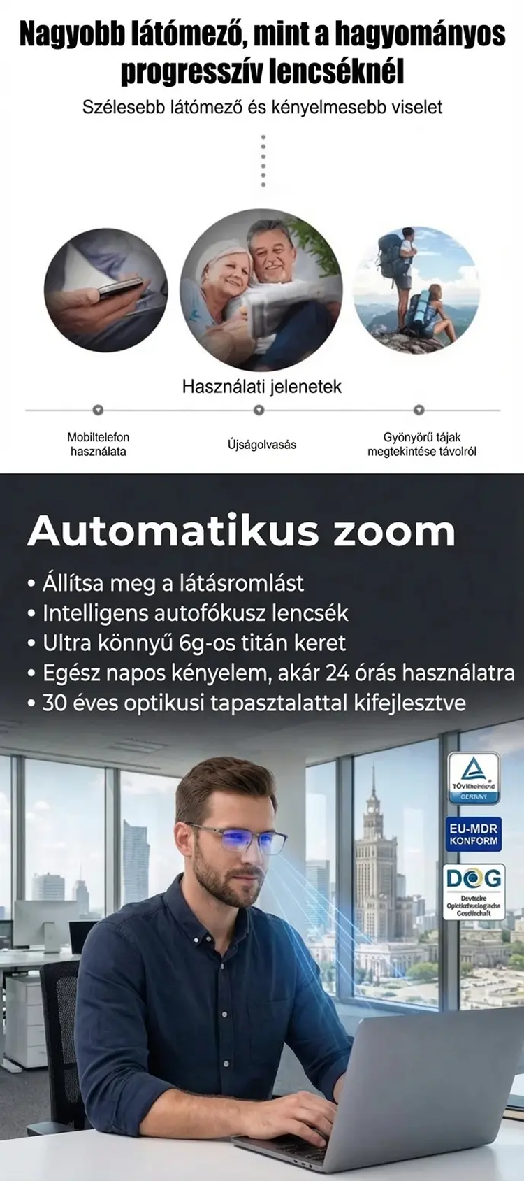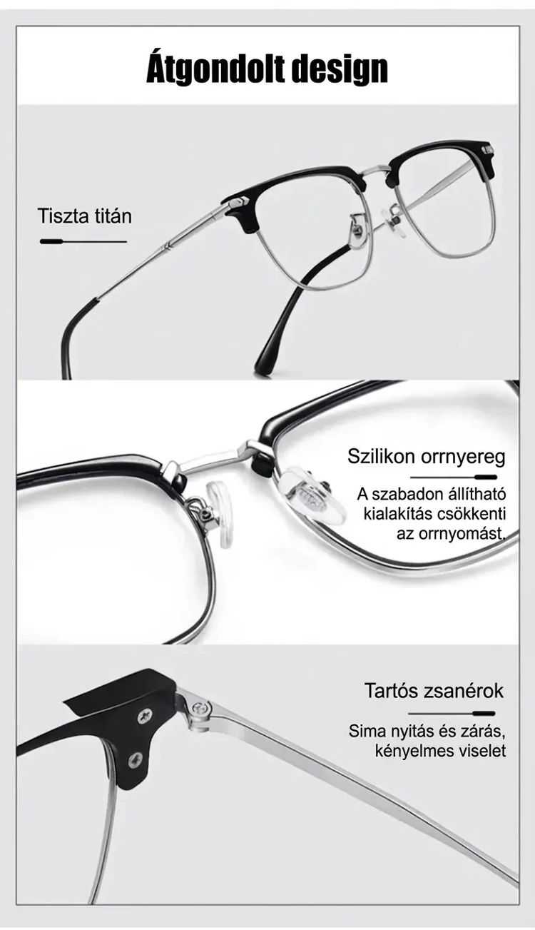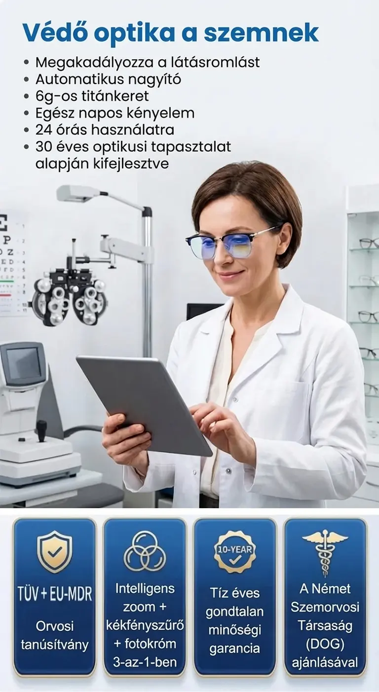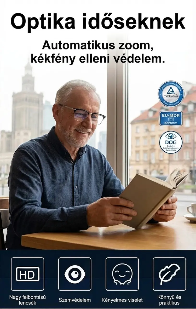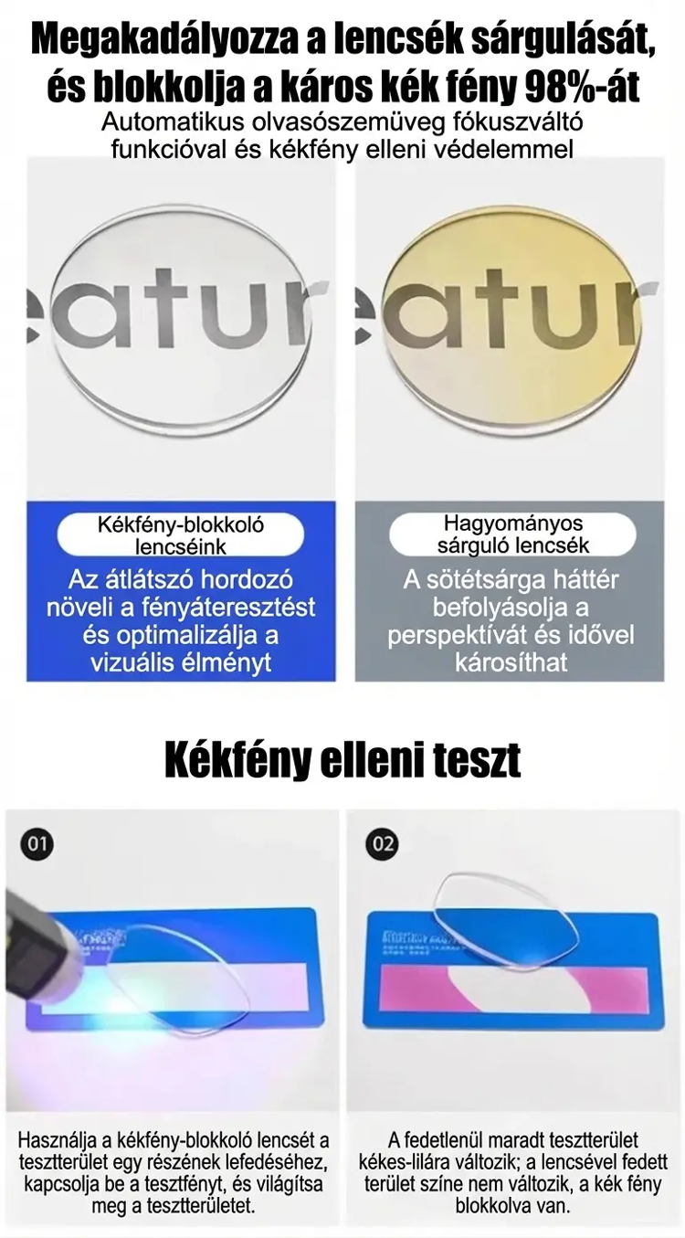 Autofókuszos, kék fényt szűrő olvasószemüveg